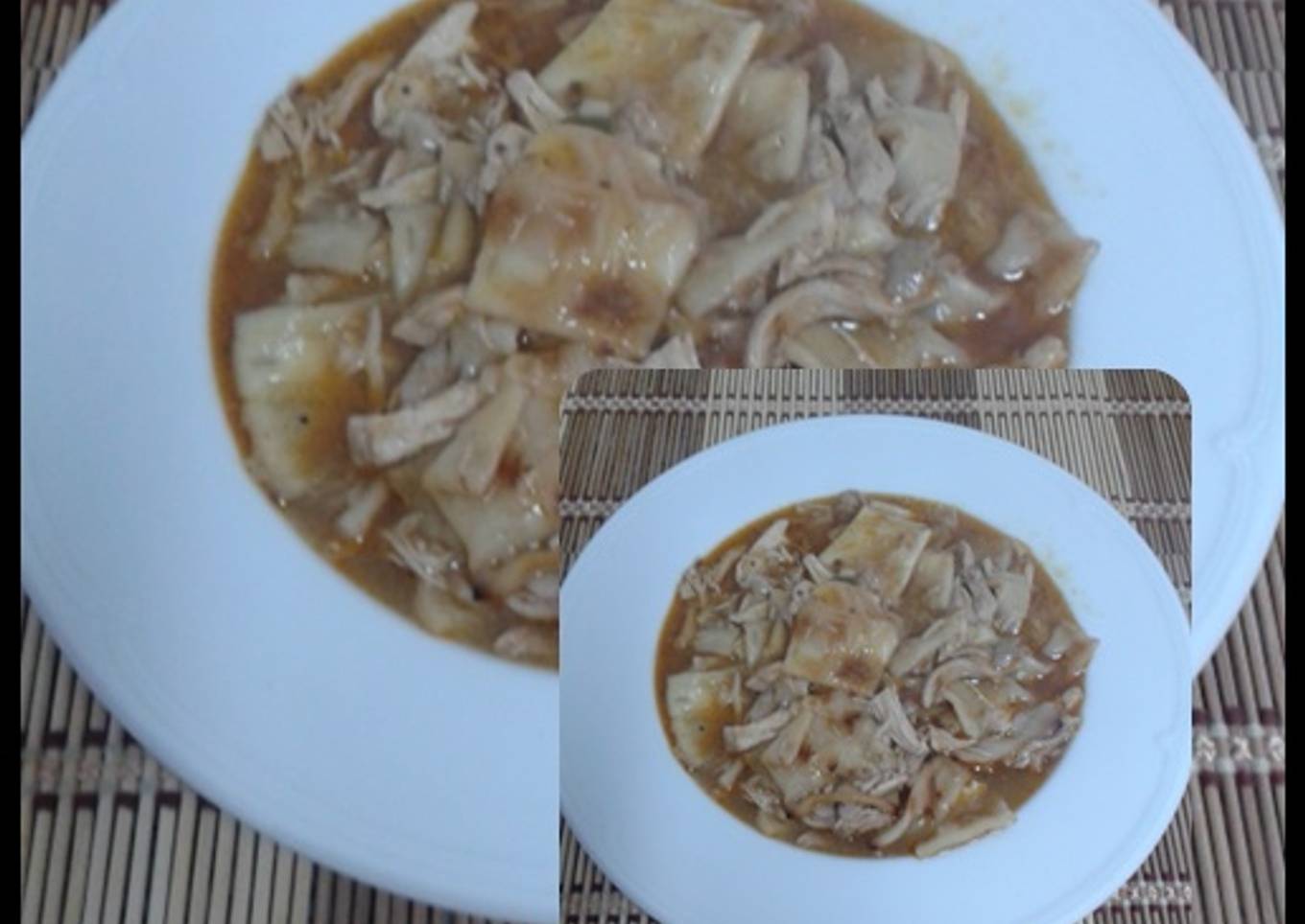 - Ponemos el sofrito en un bol y lo trituramos con la batidora y lo añadimos a la olla donde tenemos con las carne que están cocinándose. Mirar si están tiernas la carne si están sacarlas y dejar que se enfríen un poco, para poder sacar todos los hueso y desmenuzar la carne en trozos pequeños.