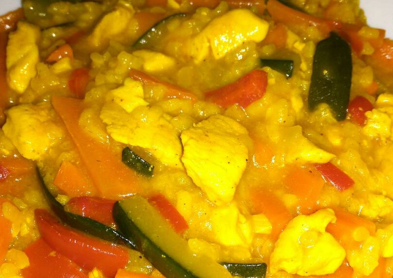 Arroz con curry, pollo y verduras