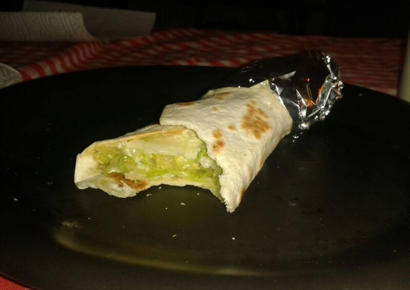 - Enrollamos la fajita y le ponemos papel de aluminio por una parte para que no se resbale la comida.