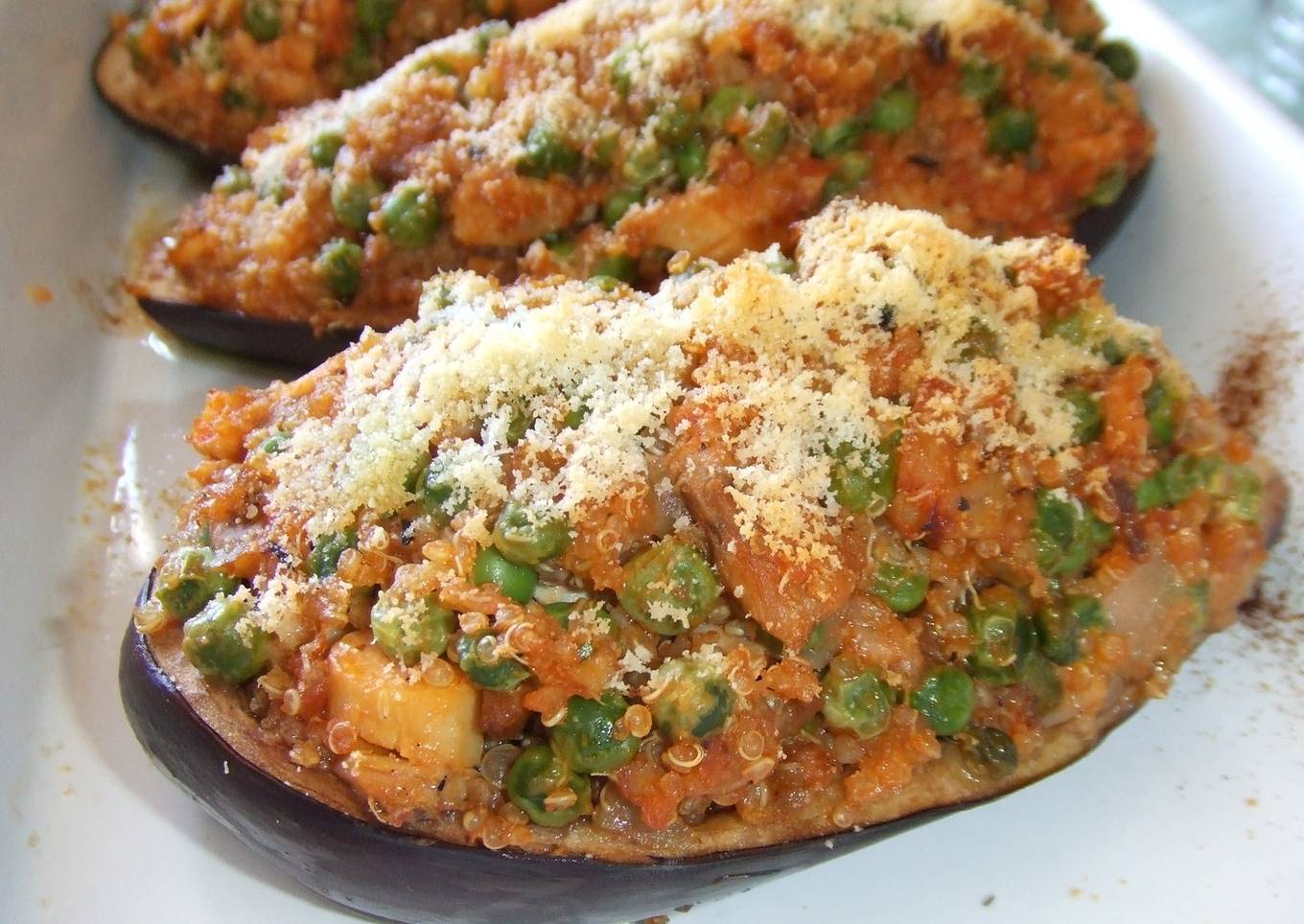 Berenjenas rellenas de quinoa y pollo