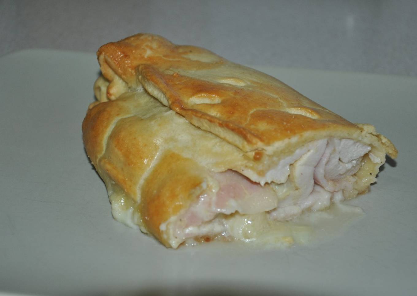 Con la idea original de un solomillo Wellington he optado por sustituir la ternera por una pechuga de pollo y la masa de hojaldre por una de empanada casera.