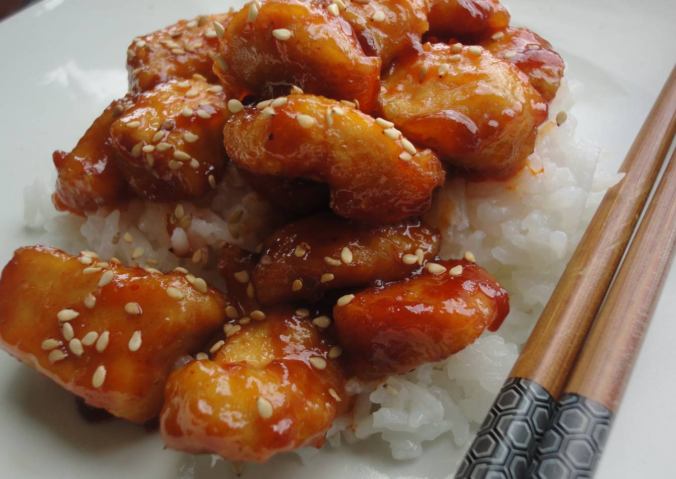 - Por último, añadimos el pollo que teníamos reservado y lo mezclamos bien con la salsa. Servimos acompañado de arroz jazmín.