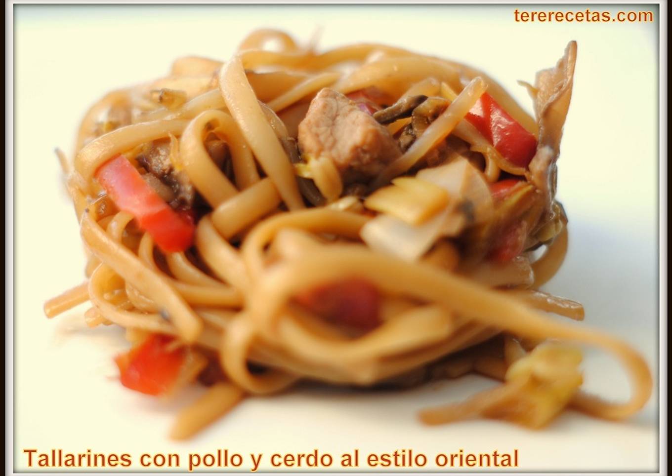Tallarines con pollo y cerdo al estilo asiático is one of the most popular of recent trending meals on earth. It's easy, it is quick, it tastes yummy. It's enjoyed by millions daily. Tallarines con pollo y cerdo al estilo asiático is something which I have loved my whole life. They are nice and they look fantastic.
