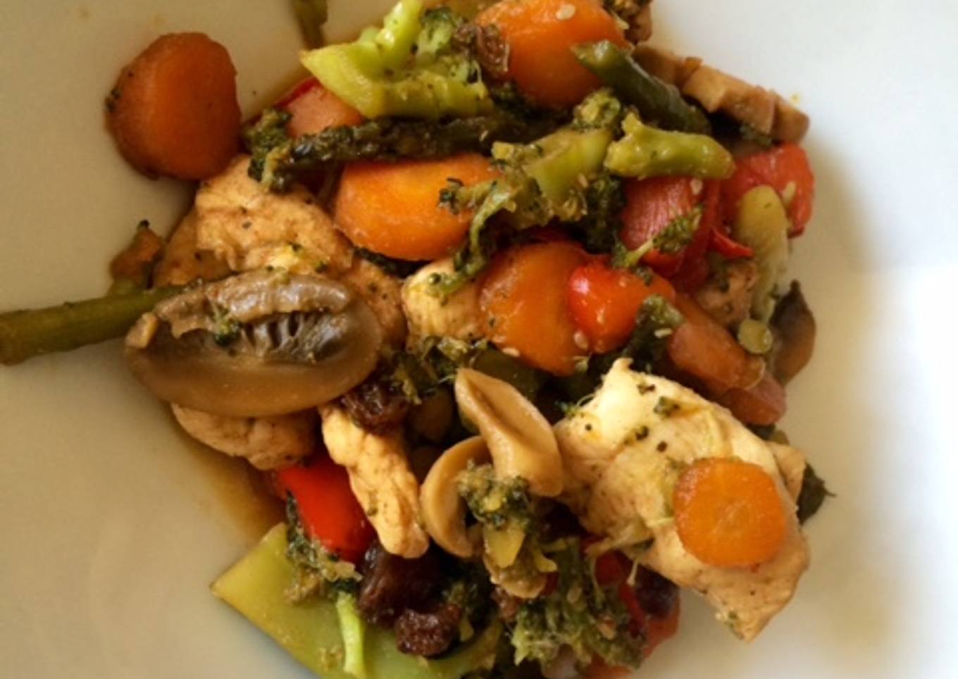 Wok de pollo especiado con verduras y jengibre
