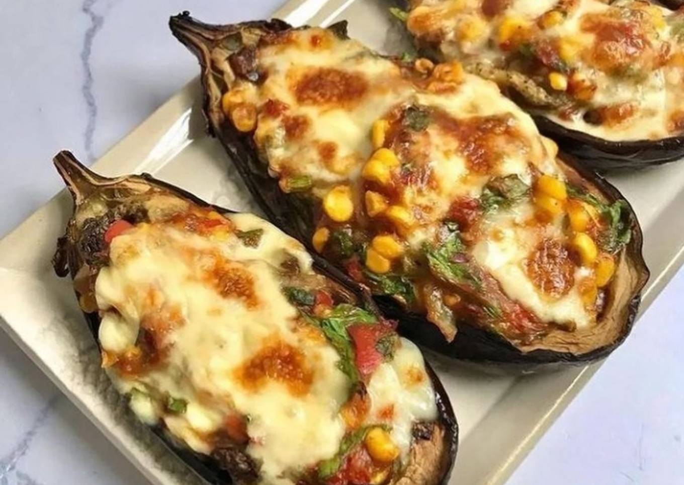 - Ahuecar las berenjenas y colocar el relleno. Poner queso por encima y llevar al horno hasta gratinar.
