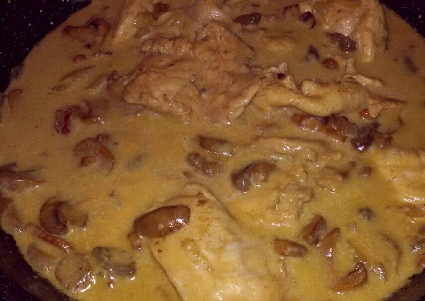 - Cuando veamos que las pechugas se han hecho bien, le añadimos la nata, removemos bien y nos quedará una rica salsa cremosa en la que mojar pan je je. Buen provecho ; )