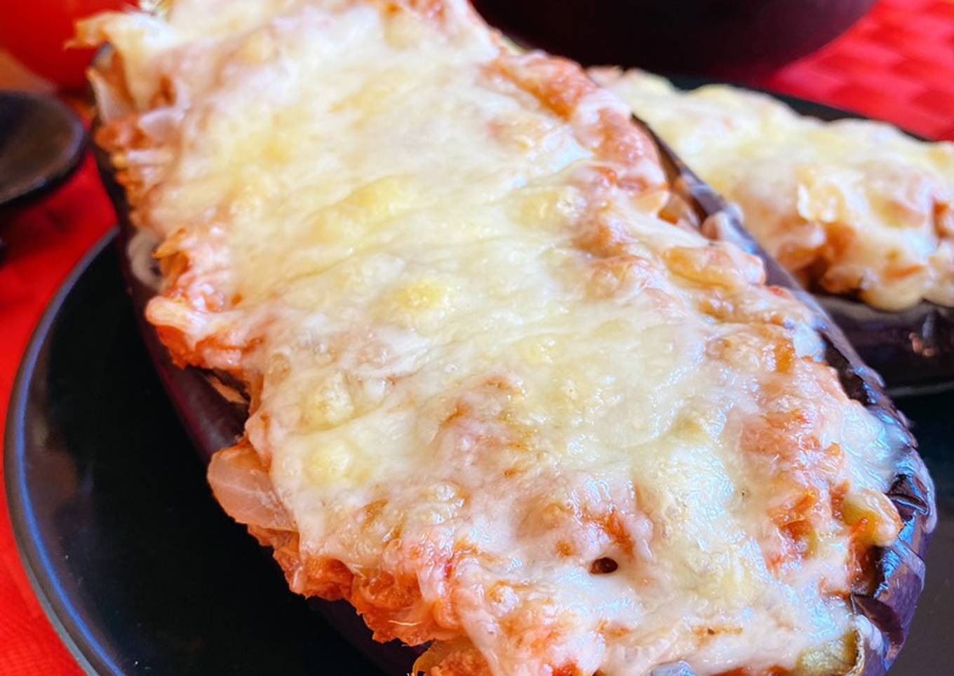- Rellenamos las berenjenas con la mezcla, echamos el queso rallado por encima, gratinamos en el horno hasta que se funda el queso y ¡listas!