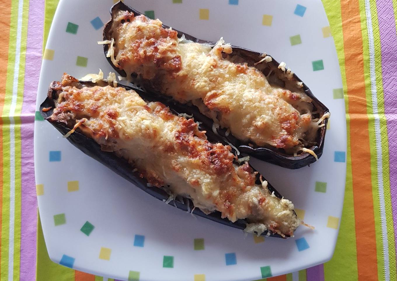 - Con la mezcla rellenamos las berenjenas, las cubrimos con el queso rallado y las gratinamos en el horno hasta que empiece a dorarse el queso.