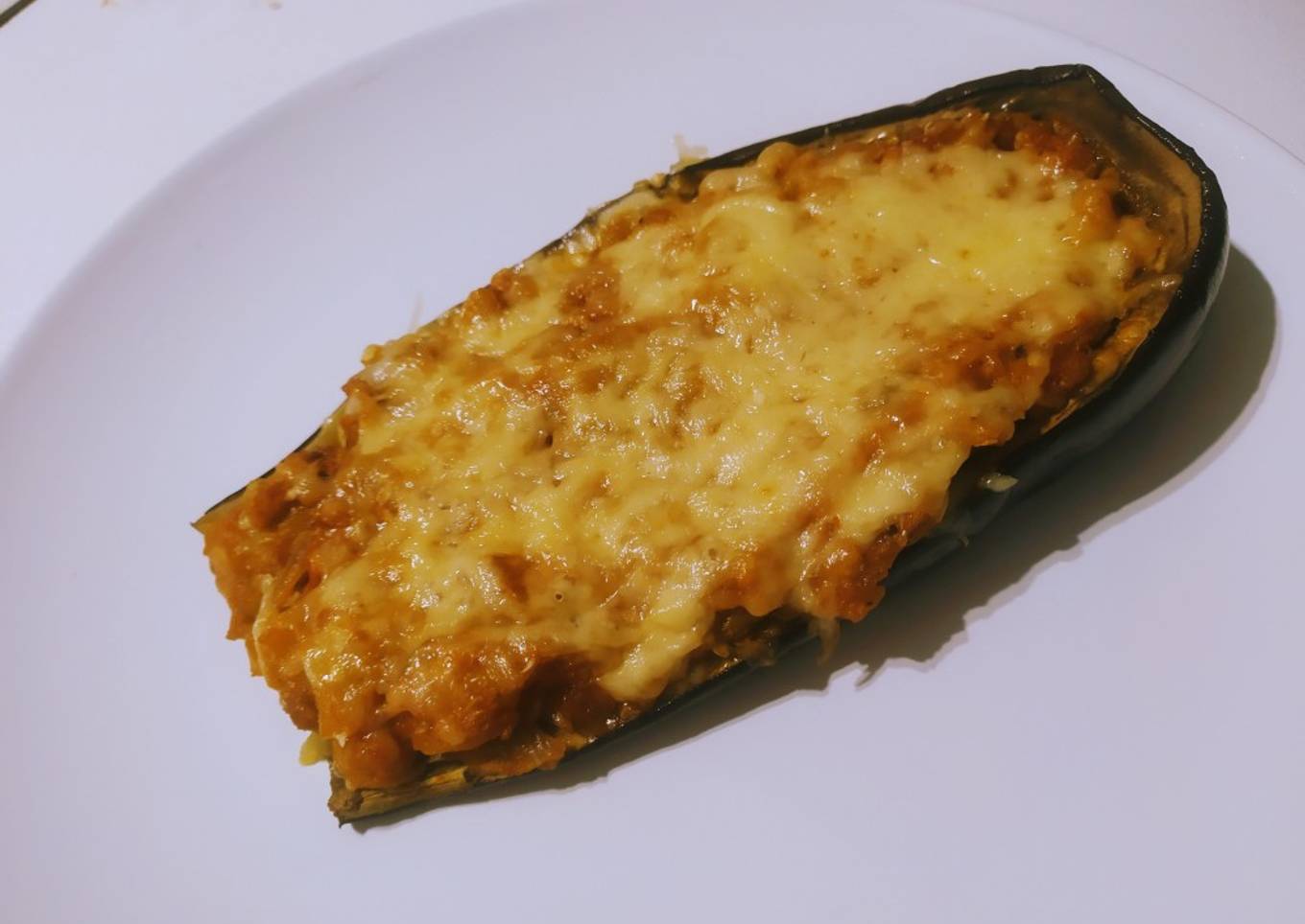 - Finalmente, debemos rellenar las pieles de las berenjenas que dejamos a parte con la mezcla de la sartén y echamos el queso rallado por encima. Lo metemos en el horno a 210 °C por unos 25 min