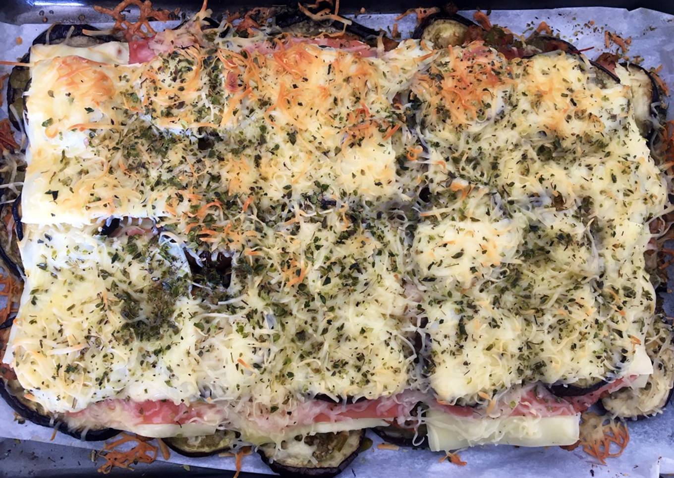 - Añadir una última capa de tranchetes, queso rallado, un chorro de AOVE y orégano. Hornear 15 minutos