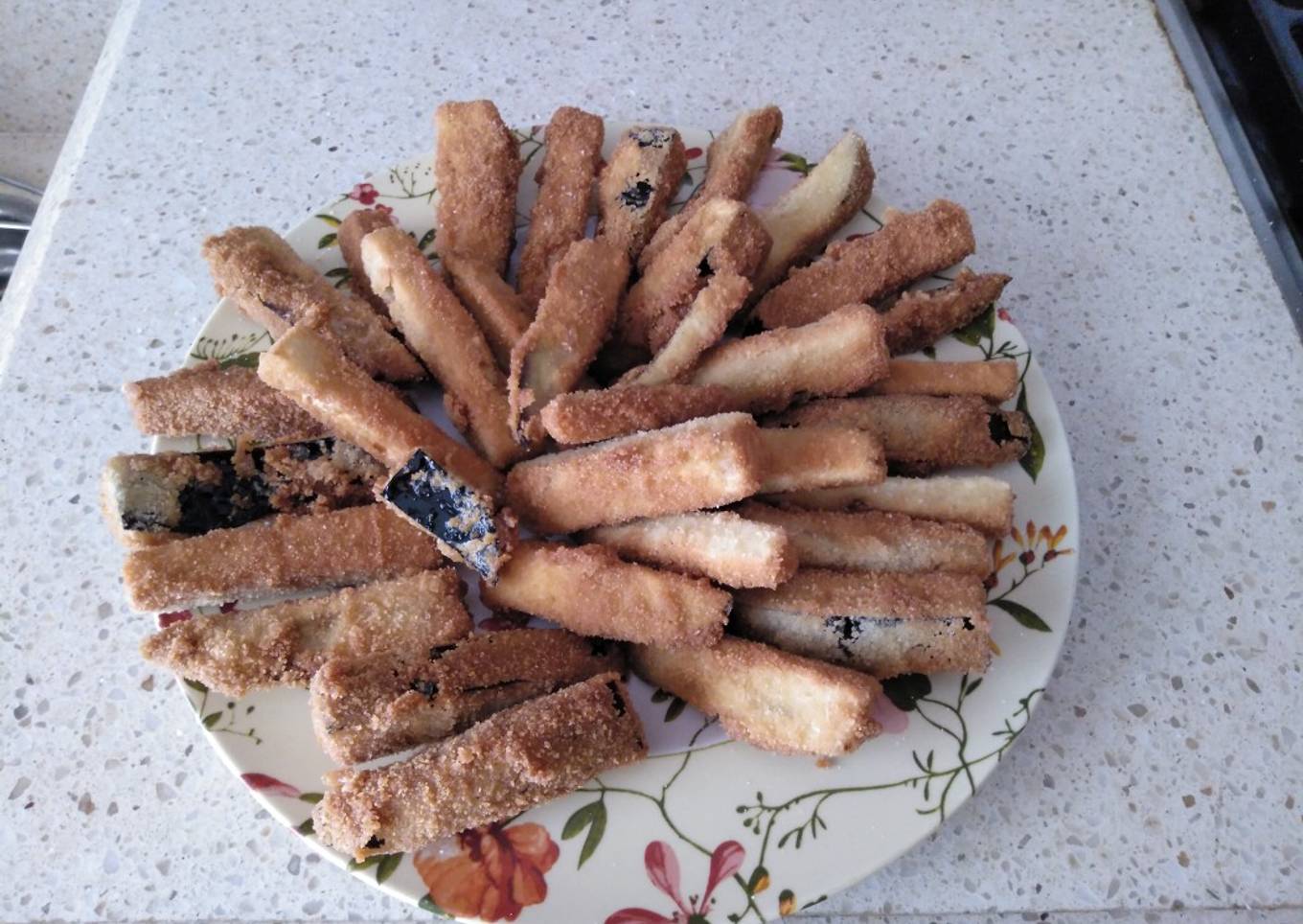 Bastones de berenjenas fritas