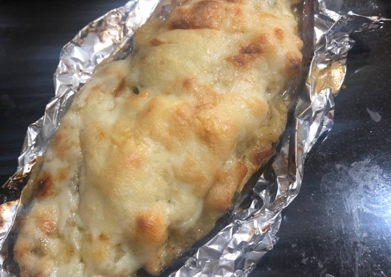 - Rellenamos las berenjenas con toda la mezcla y le ponemos el queso encima para luego gratinar al horno durante 5 min