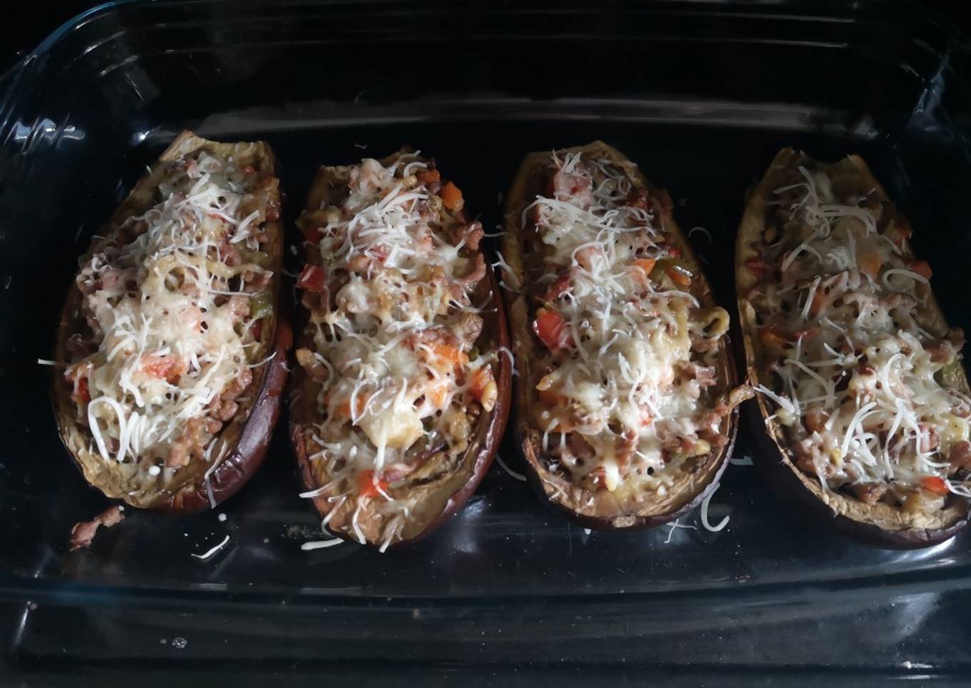 Berenjena rellena de verdura y carne