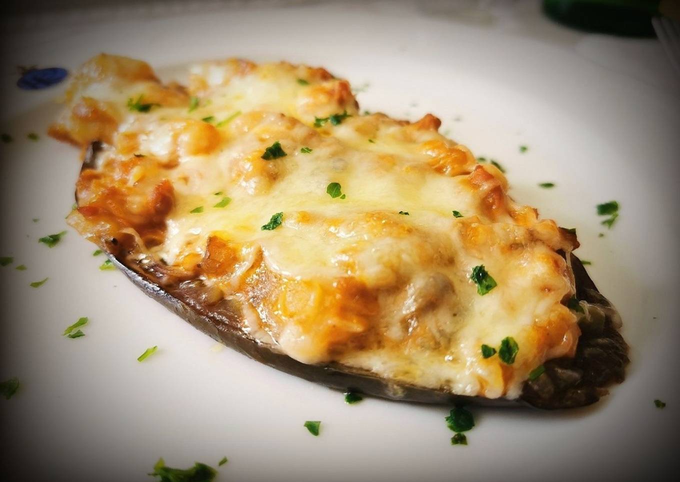 - Mientras, preparamos una fuente para horno y en ella colocamos las barcas de berenjena, las rellenamos a nuestro gusto, espolvoreamos con el queso rallado, por supuesto precalentamos el horno para gratinar