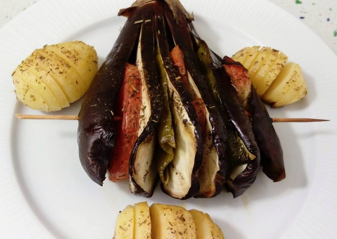 Instructions to make to make Abanico de berenjenas rellenas y patatas asadas