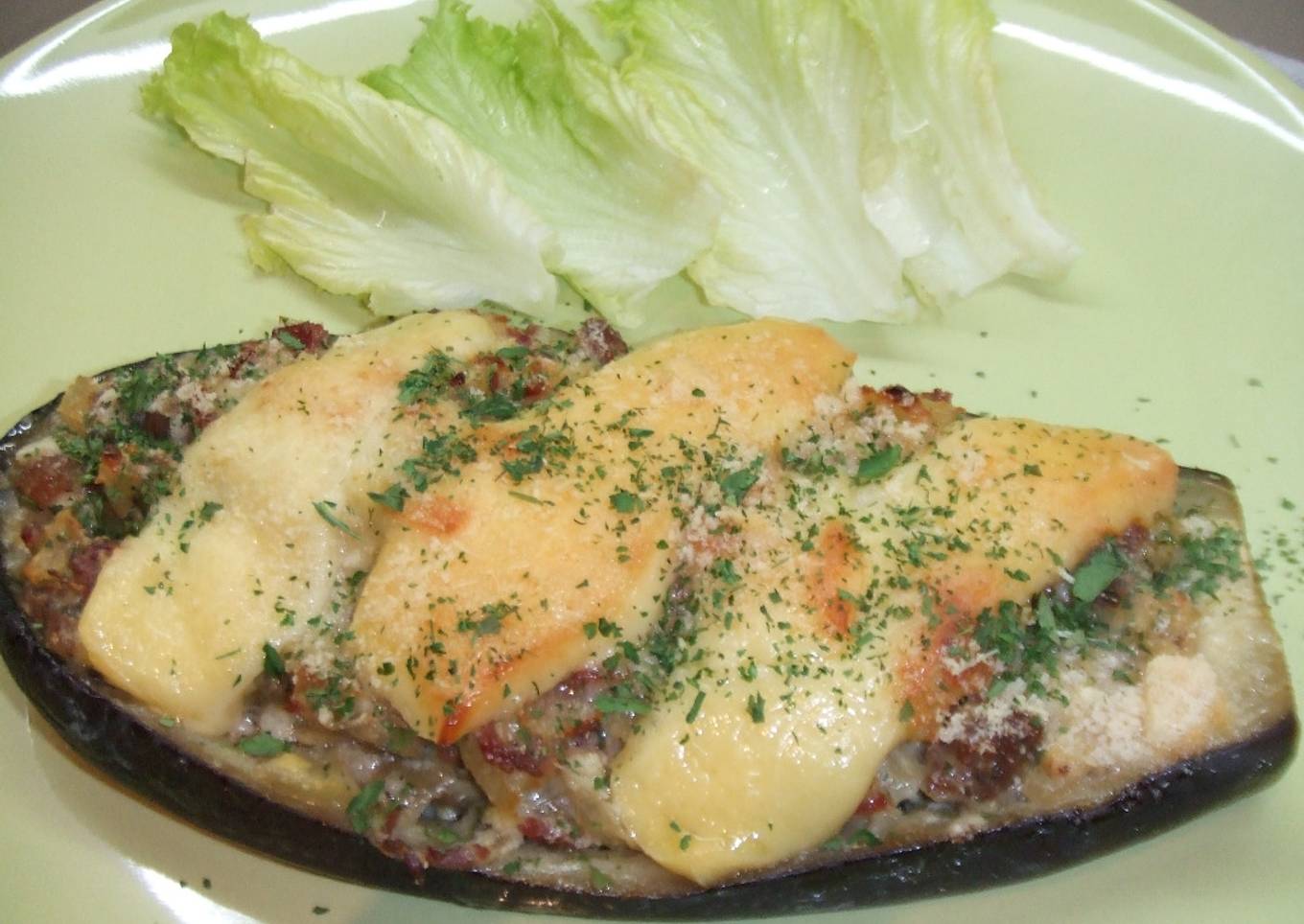 Berenjena gratinada rellena con carne de buey