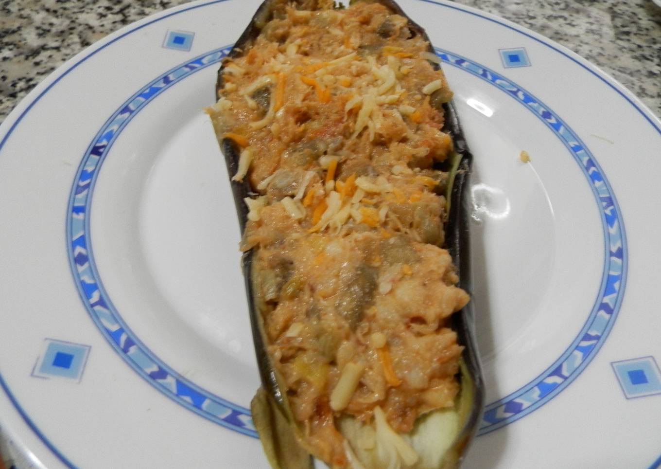 - Por ultimo rellenamos las berenjenas, si queremos ponemos queso rallado por encima y vale tambien sin él.