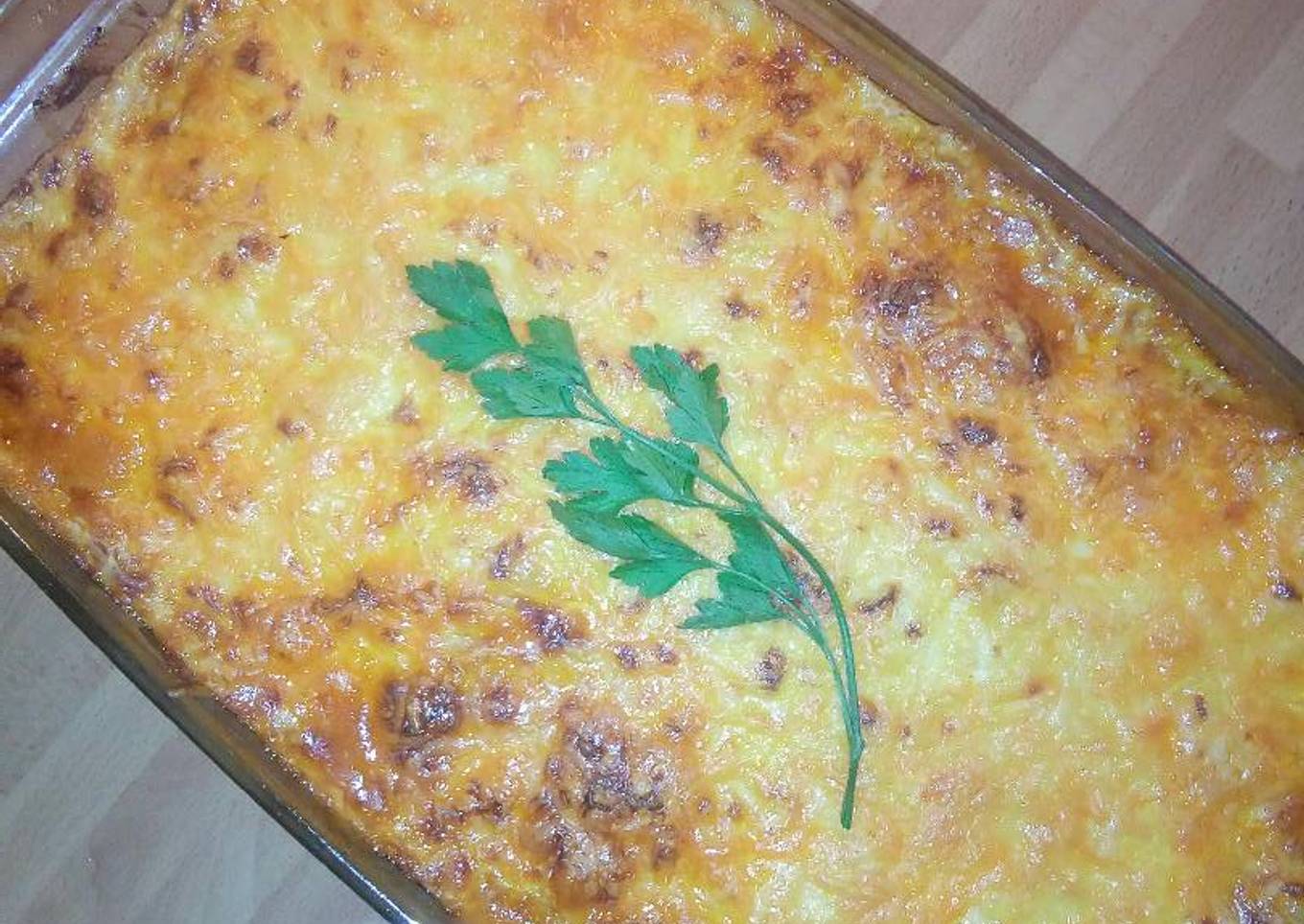 Se trata de un plato griego "Moussaka", pero supongo que alguien lo habrá adaptado un poco más a estos lares (España). Simula una lasaña de carne de ternera y verduras a la plancha, en sustitución a las láminas de pasta. Queso fundido y gratinado. ¿Sigo?