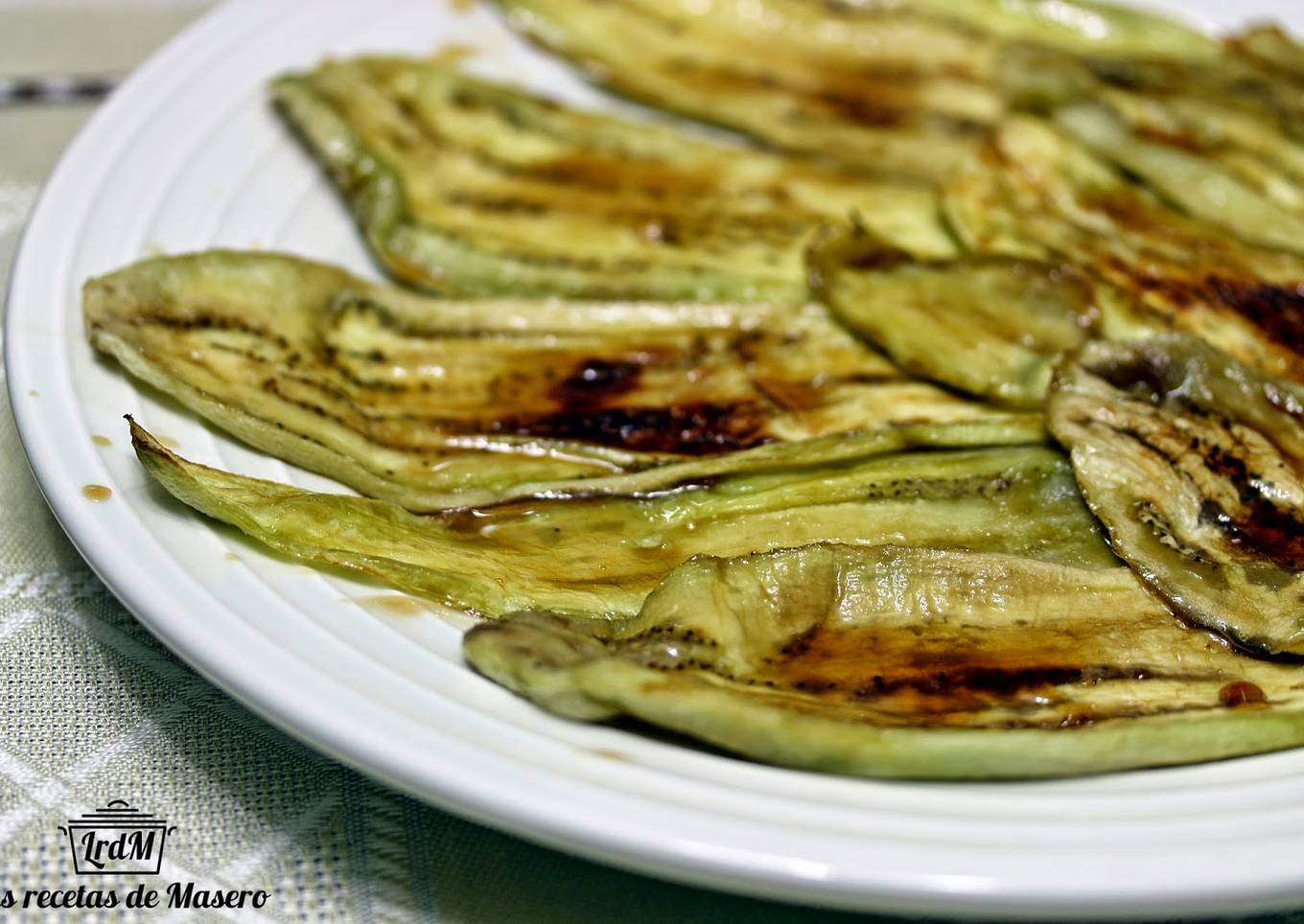 Hace ya un mes más o menos me fui a comer con unas compañeras del trabajo a un restaurante italiano y como primer plato opté por estas berenjenas. A pesar de que la cantidad fue más bien escasa, me gustó mucho la combinación de miel y vinagre de Módena. Las berenjenas que comí eran al horno, pero se pueden hacer a la plancha o fritas pasadas por harina, eso va en gusto del consumidor. Yo las hice al horno.