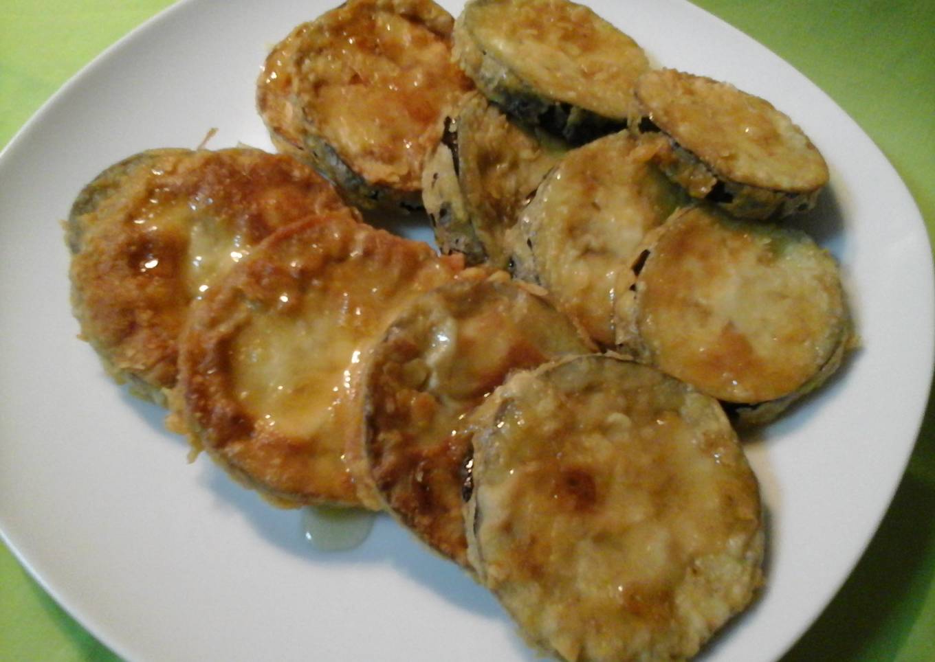 Unas rodajas de berenjenas rebozadas con un suave toque de miel de flores.