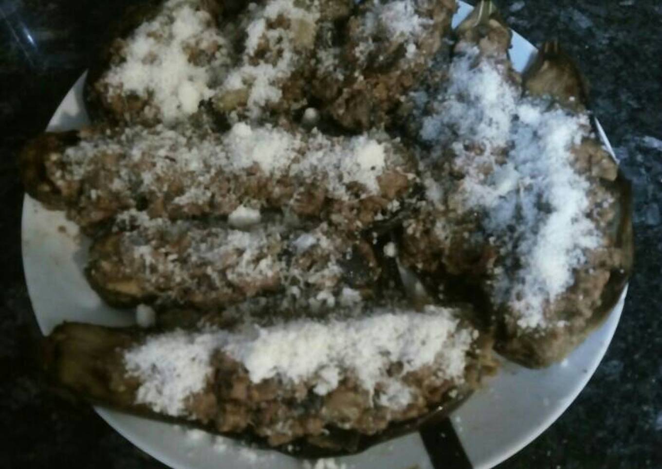 Steps to make to make Berenjenas rellenas de carne a la pimienta