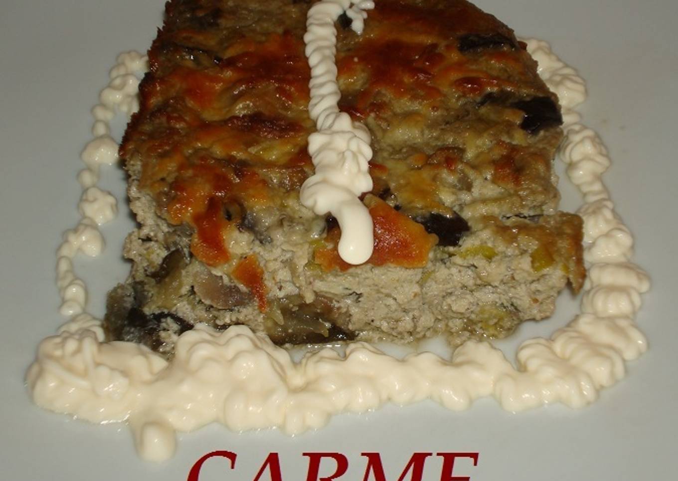 He preparado este pastel de berenjena y champiñones, que ha quedado muy rico y suave.