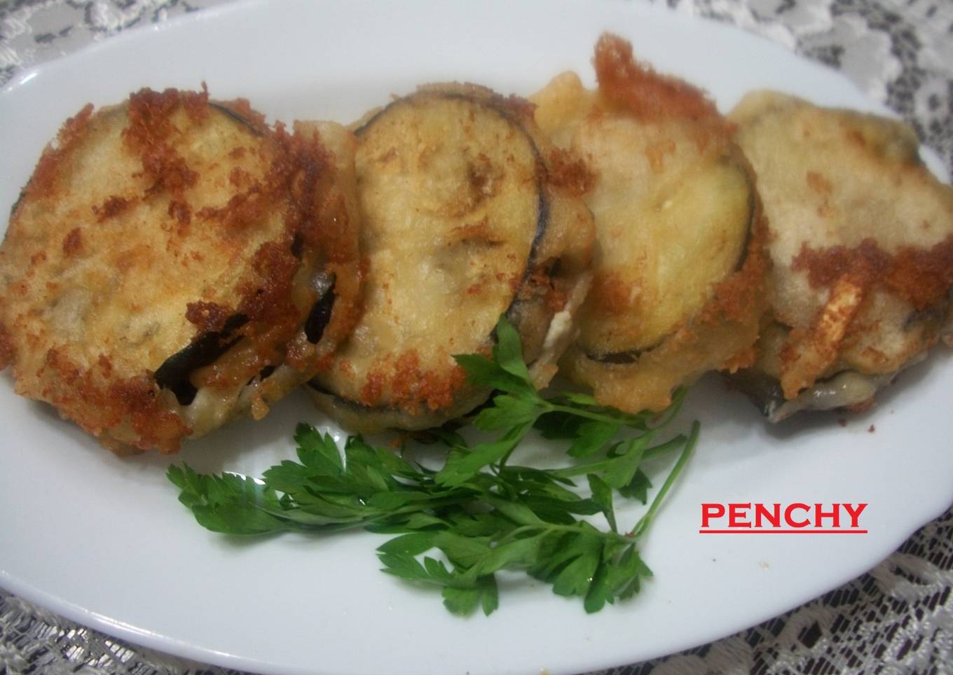 Berenjenas cortadas a rodajitas, rellenas de queso de cabra, y pasadas por una masa a base de harina, sal y sifón, lo que la hace super crujiente, quedan deliciosas, como tapas, pinchos, entrantes, o acompañando algún plato de carne, o huevos.