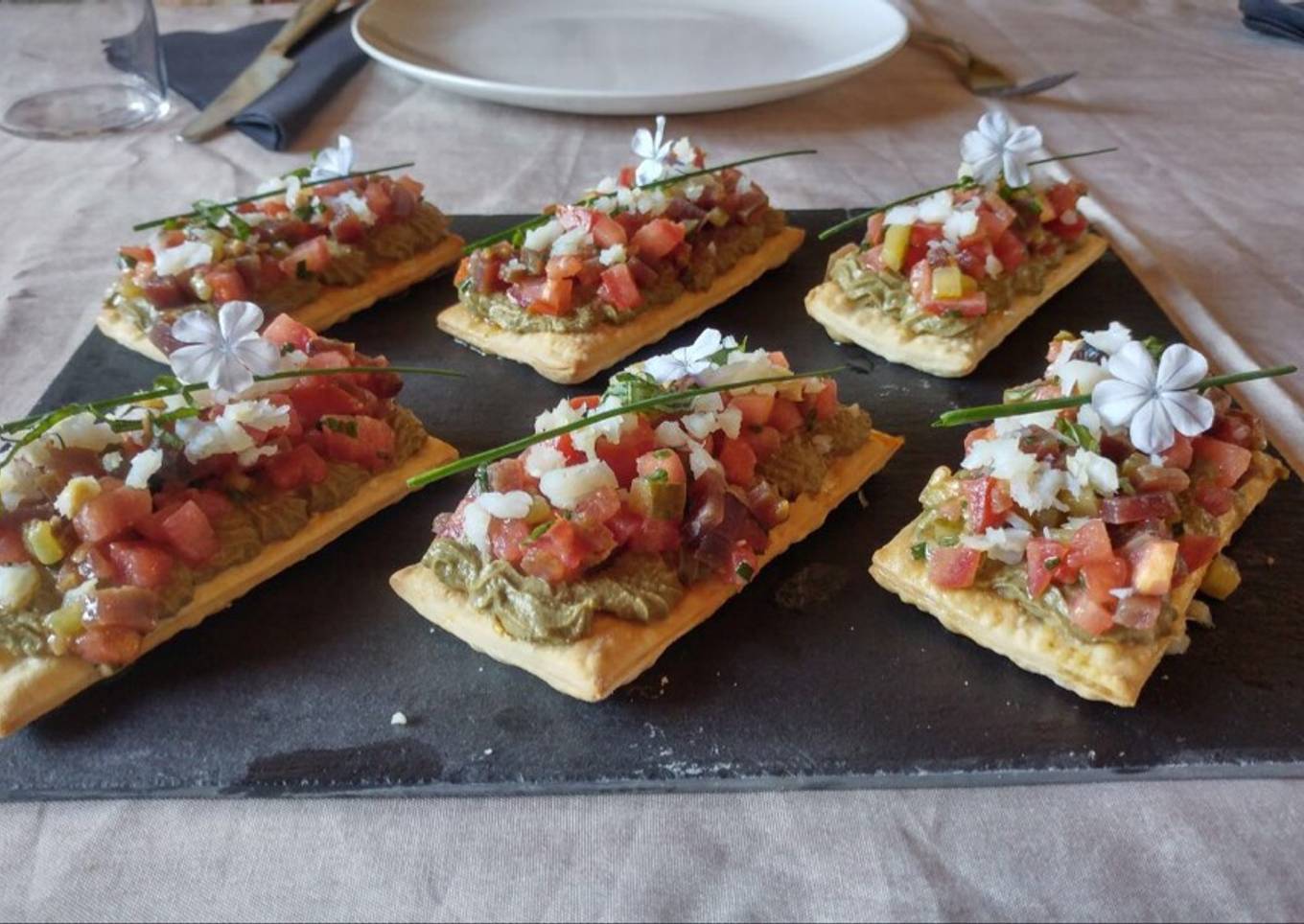 Mousse de berenjena con mojama de atún